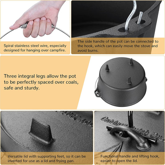 Dutch Oven Cast Iron Camping Pot, 5.6L